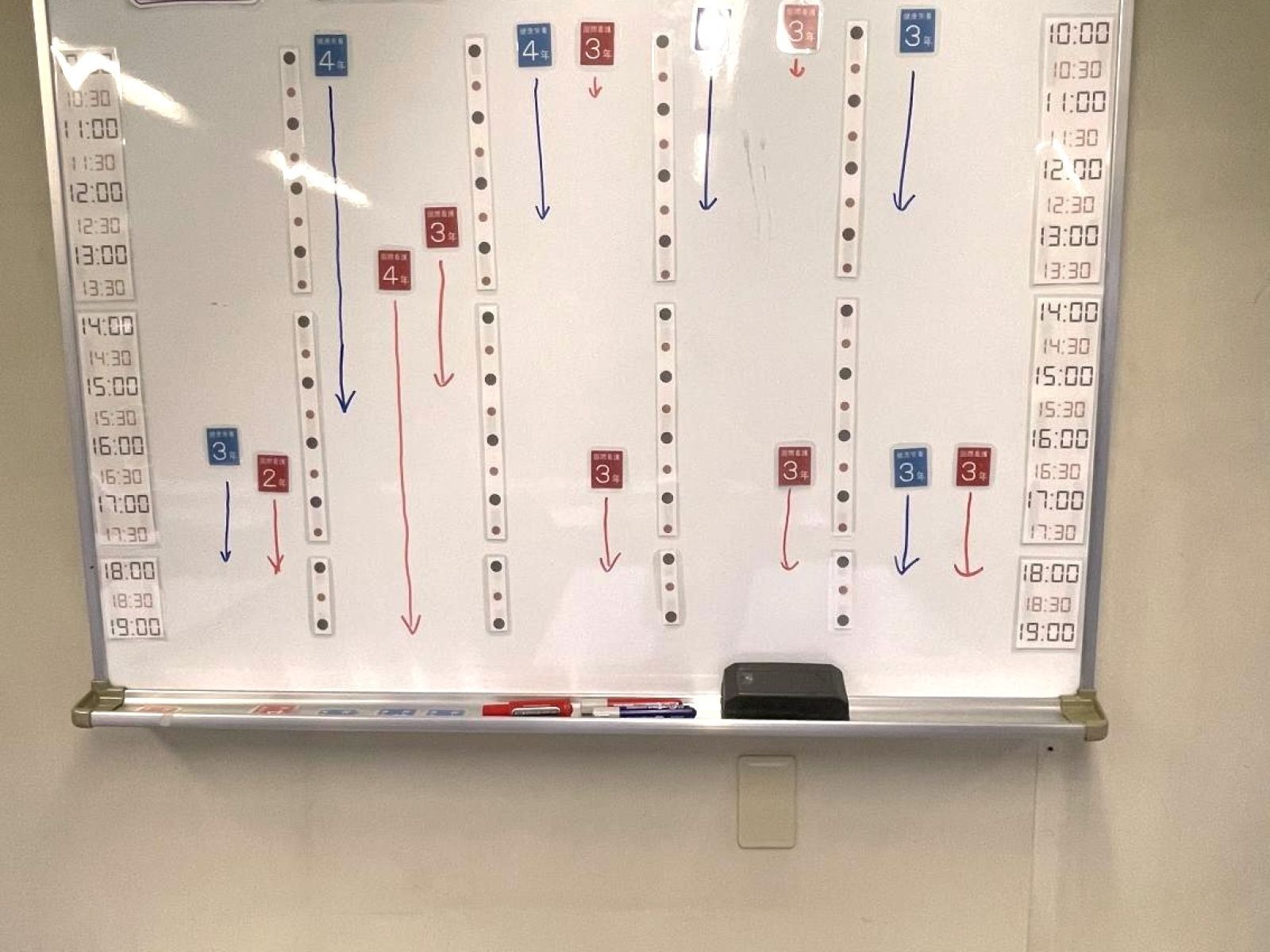 - 入口をアカデミック・スキルズとその他に分けました。el-campus上でのチェックを受けた後のアカデミック・スキルズの方は向かって右側から入り受付票に必要事項を記入し受付のPSに渡してください。それ以外の方は向かって左側から入場し、入退室システムでの入力
