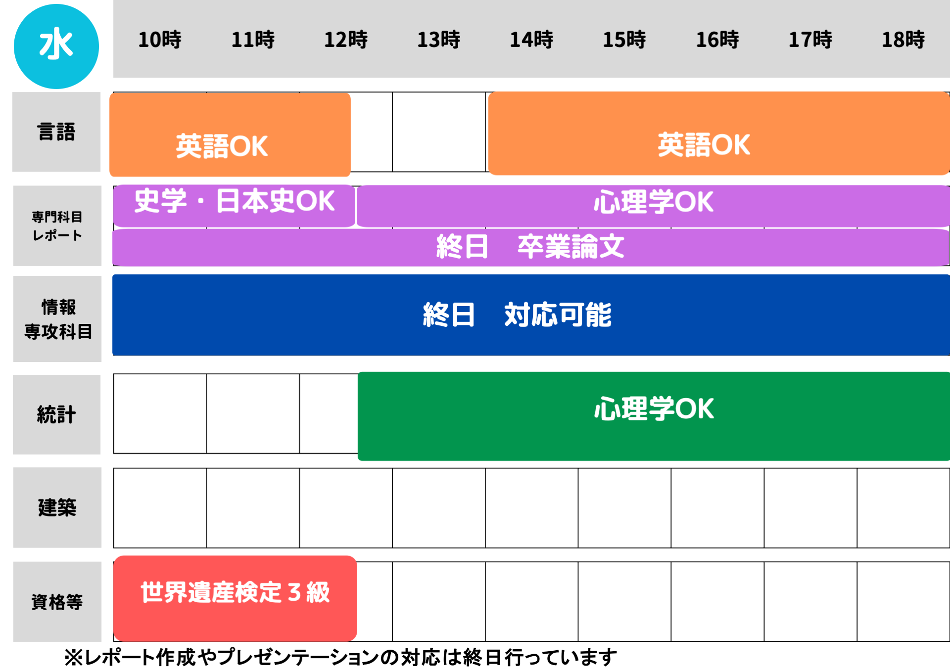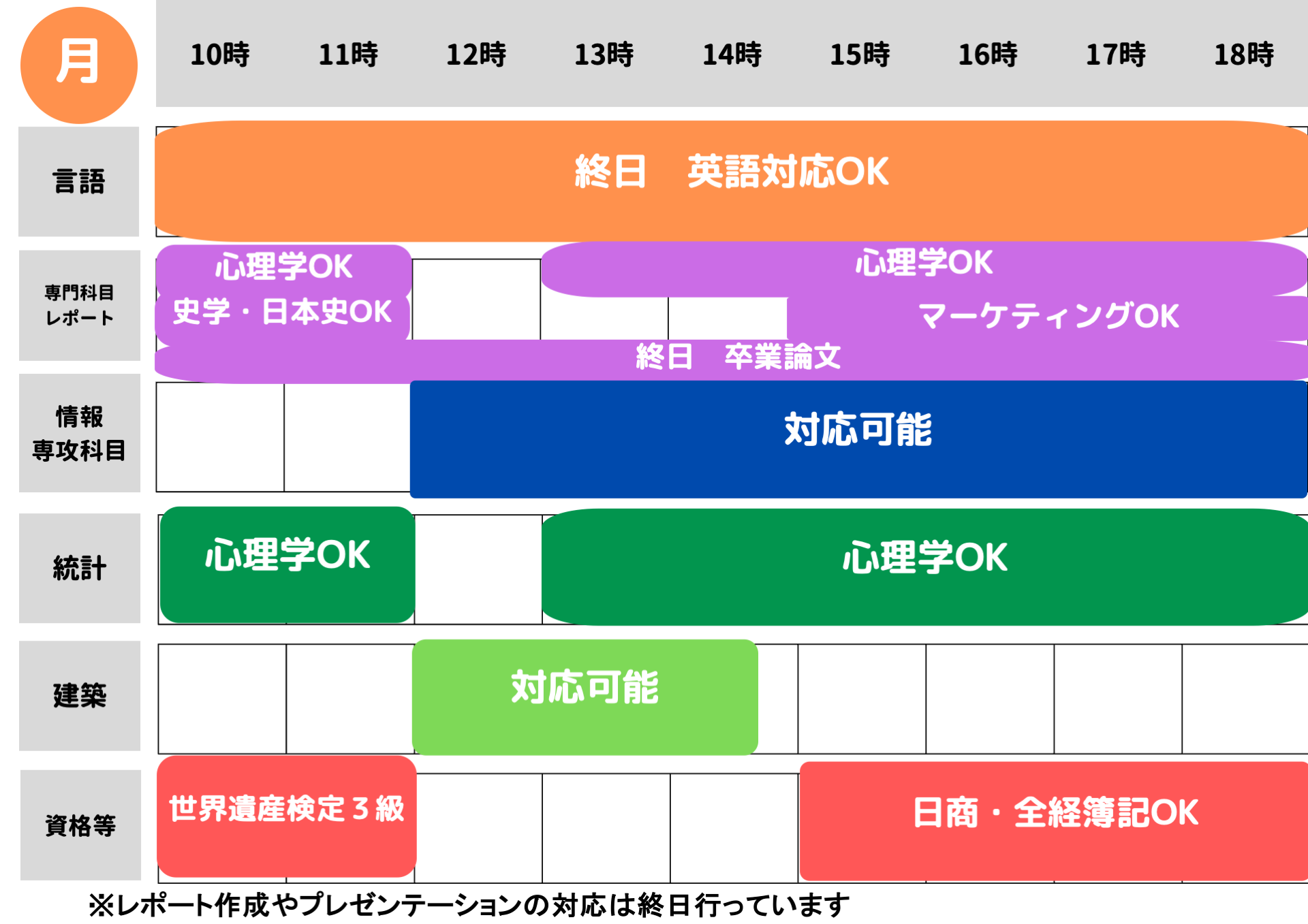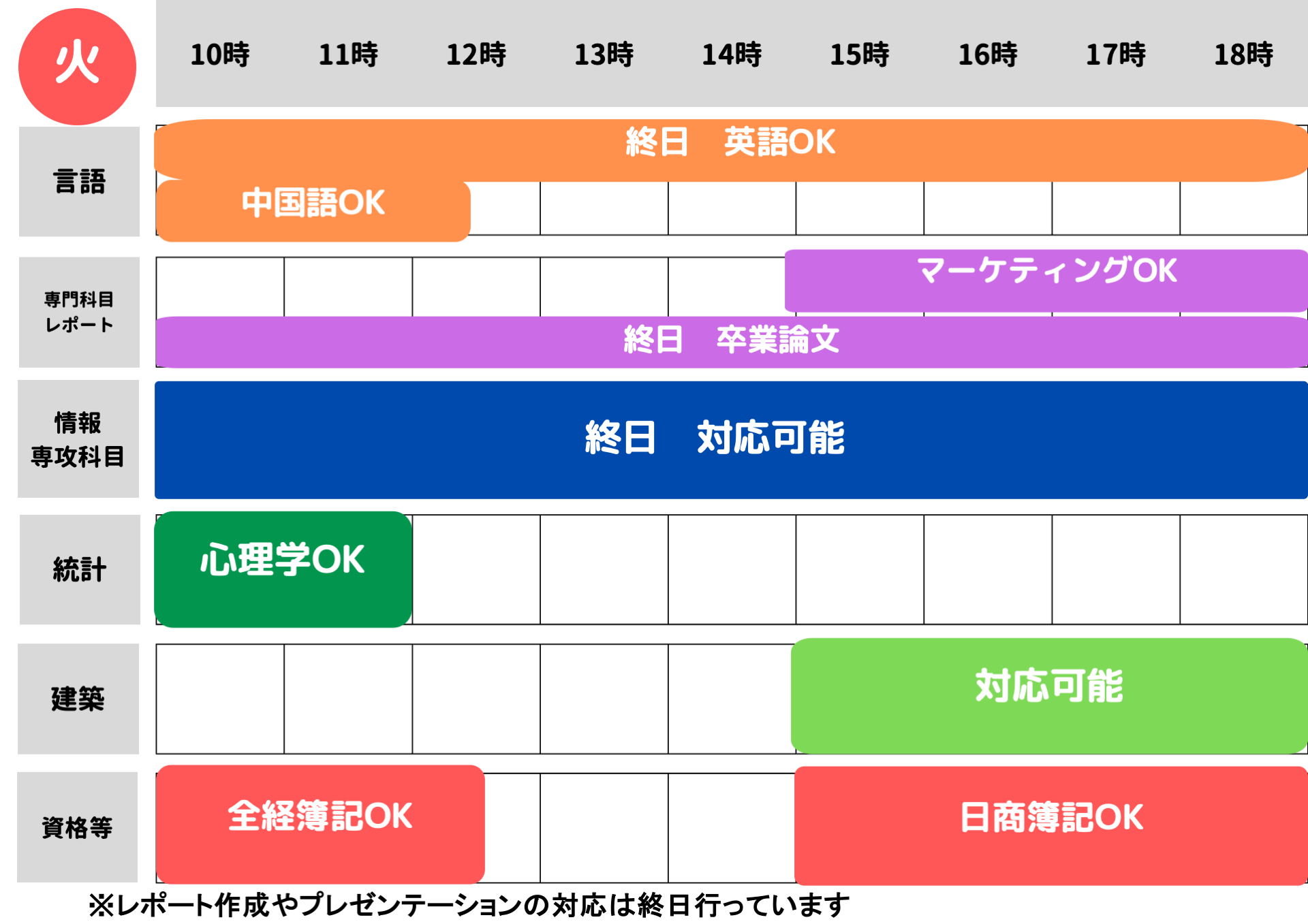 必修科目は随時対応可能です。またタイムテーブルにない分野でも対応可能な場合があります。